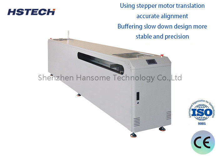 Deze machine, ook wel PCB-vertalingsmachine genoemd, wordt gebruikt voor het transporteren van boards van één lijn naar twee lijnen of omgekeerd. De oriëntatie van het bord verandert niet tijdens het passeren.
